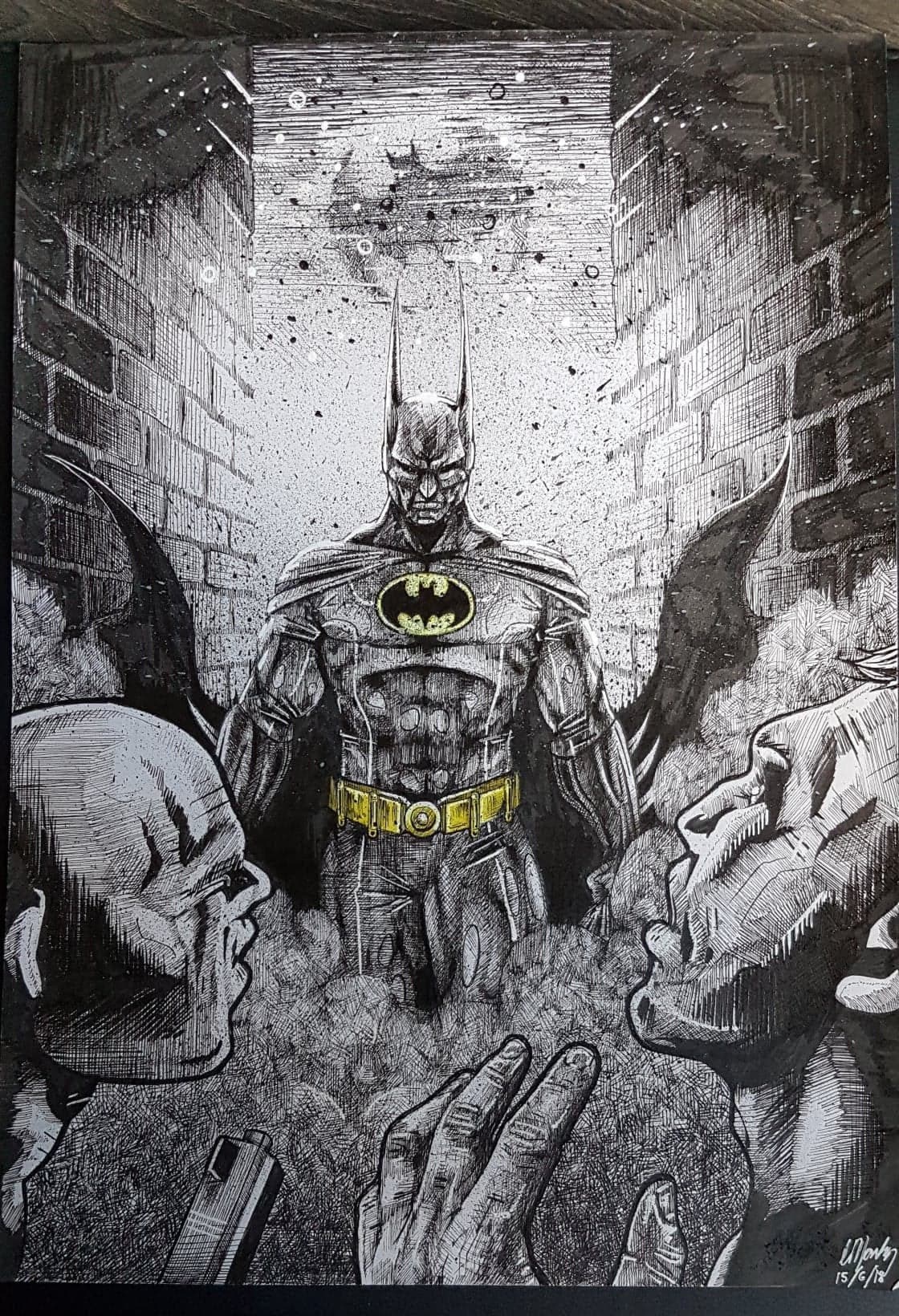 Batman Portrait Drawing Original Pointillism Art Dark Knight Etsy Uk